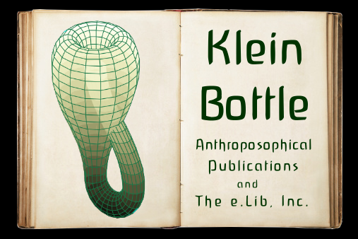 Yes, Anthroposophical Publications has taken the Klein Bottle as its Logo/icon. Why? The Klein Bottle is a 4-dimensional object rendered in 2- and/or 3-dimensional space, just as the anthroposophical ideas — multi-dimensional concepts — it plans to bring into a 2-dimensional medium: the printed page. And yes, they will be bringing the work of Rudolf Steiner and anthroposophy to the world! There are over 3,000 lectures by Steiner that have never been transated into English, and that sounds like a goal, something to shoot for. The feeling at “Anthro Pubs” is that, “if it is available in German, it should be available in English!” Rudolf Steiner has said that English is the universal langusage, and will become more so in the future. This is ever more true, today.